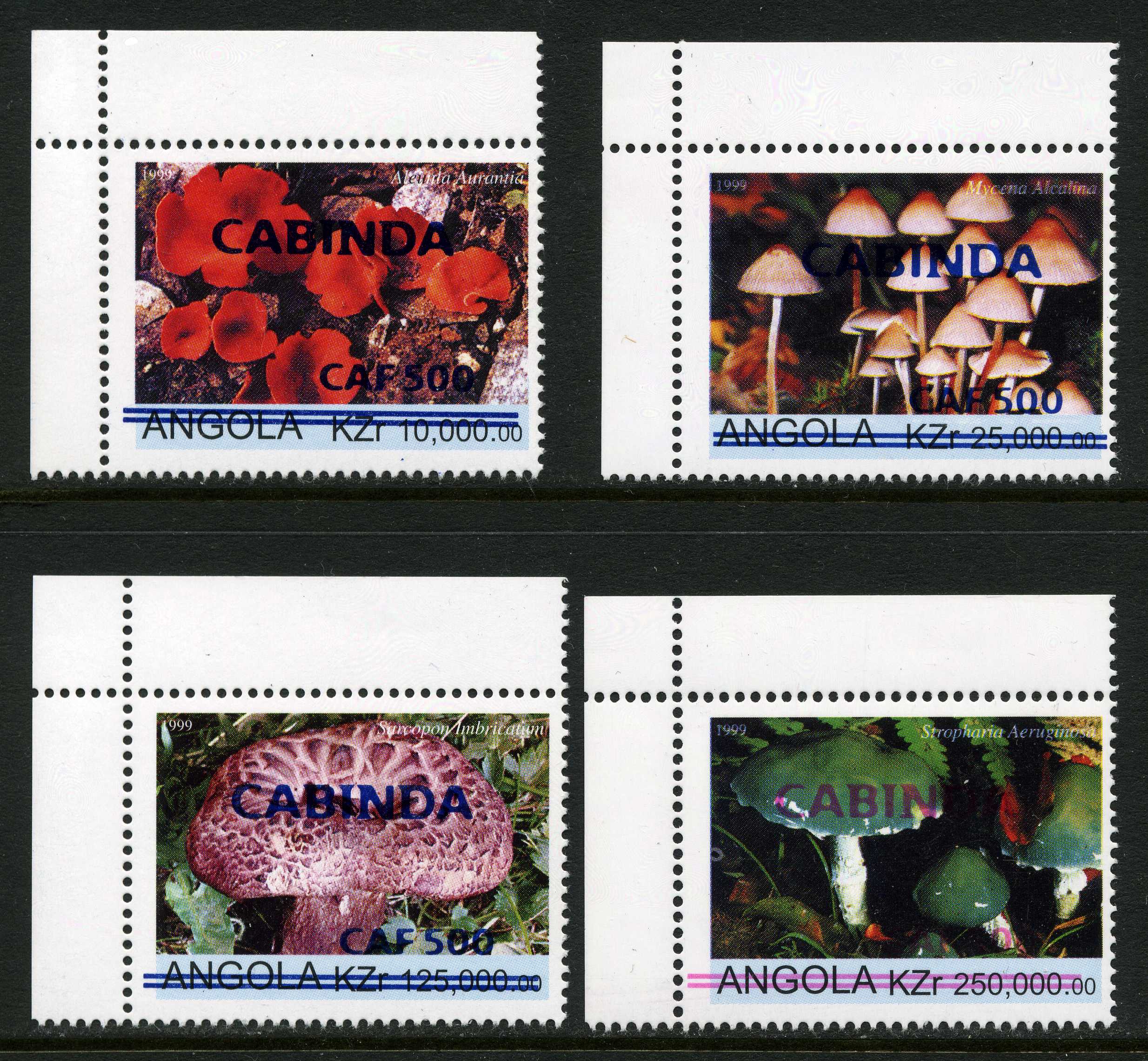 | Angola (Cabinda overprints) | 2006 | DM2006 | Separates: Angolan stamps from 1999 issue issued in 2006 by an exclave and province of Angola called Cabinda. All overprinted in blue 'CABINDA' with face value corrected to 'CAF500'. Aleuria aurantia, Mycena alcalina, Sarcodon imbricatum, Stropharia aeruginosa. | VIEW |