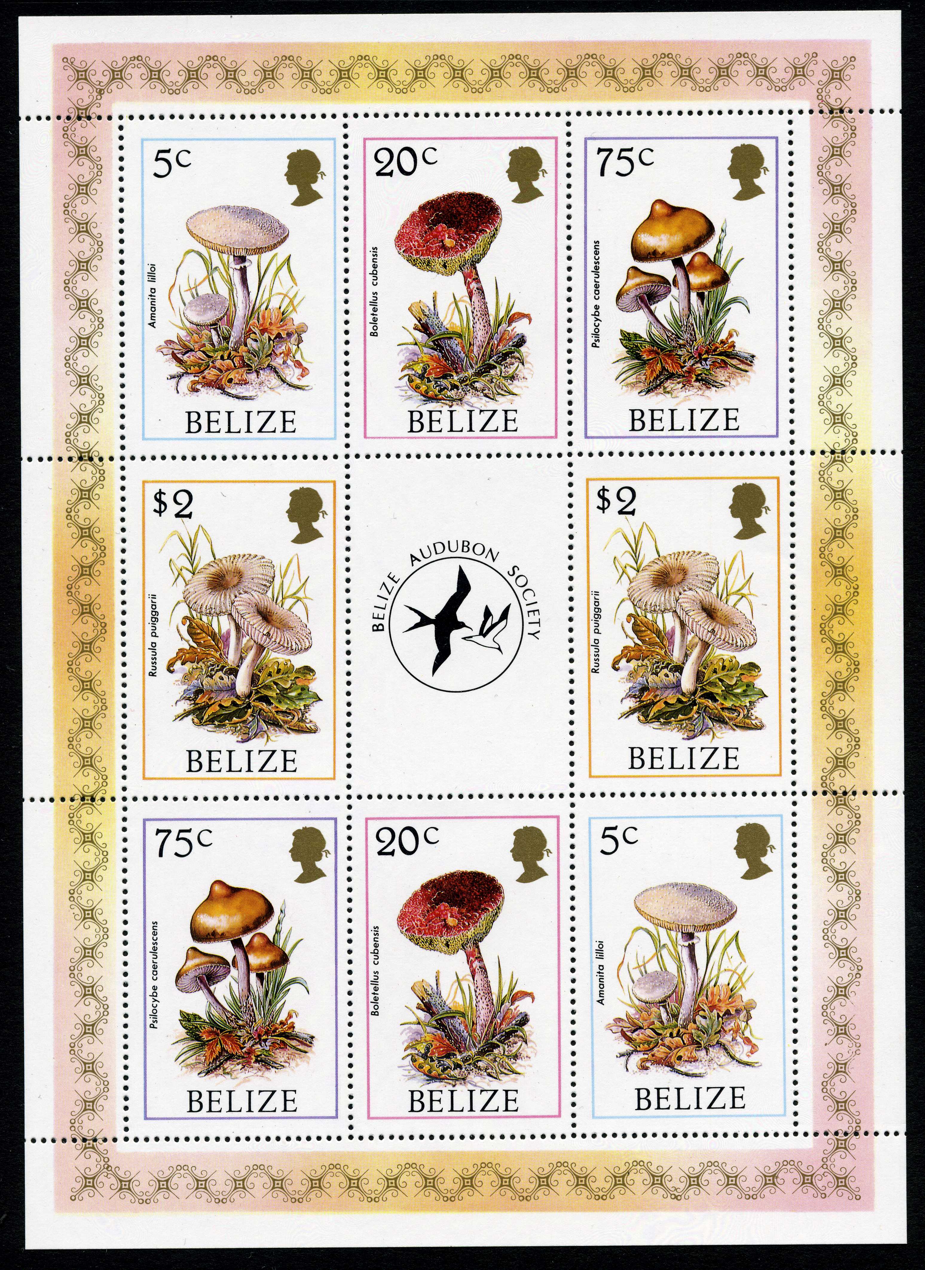 | Belize | 1986 | 969 | Russula puiggarii two samples of each stamp in the 4-stamp series in a 3x3 minisheet dedicated to the Belize Audubon Society | |