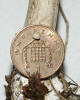 Marasmius setosus (a very tiny mushroom, on a penny to compare with the Shaggy Parasol)